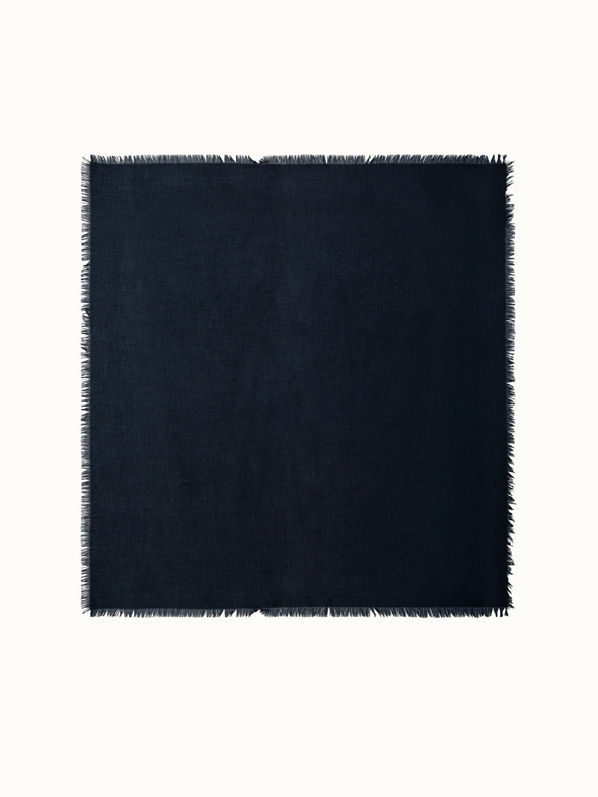 This large cashmere fringe scarf is perfect for layering over a coat. Crafted from a heavier cashmere material, this scarf is dense but soft. Measures 140 x 140 cm / 55.1 x 55.1 in.