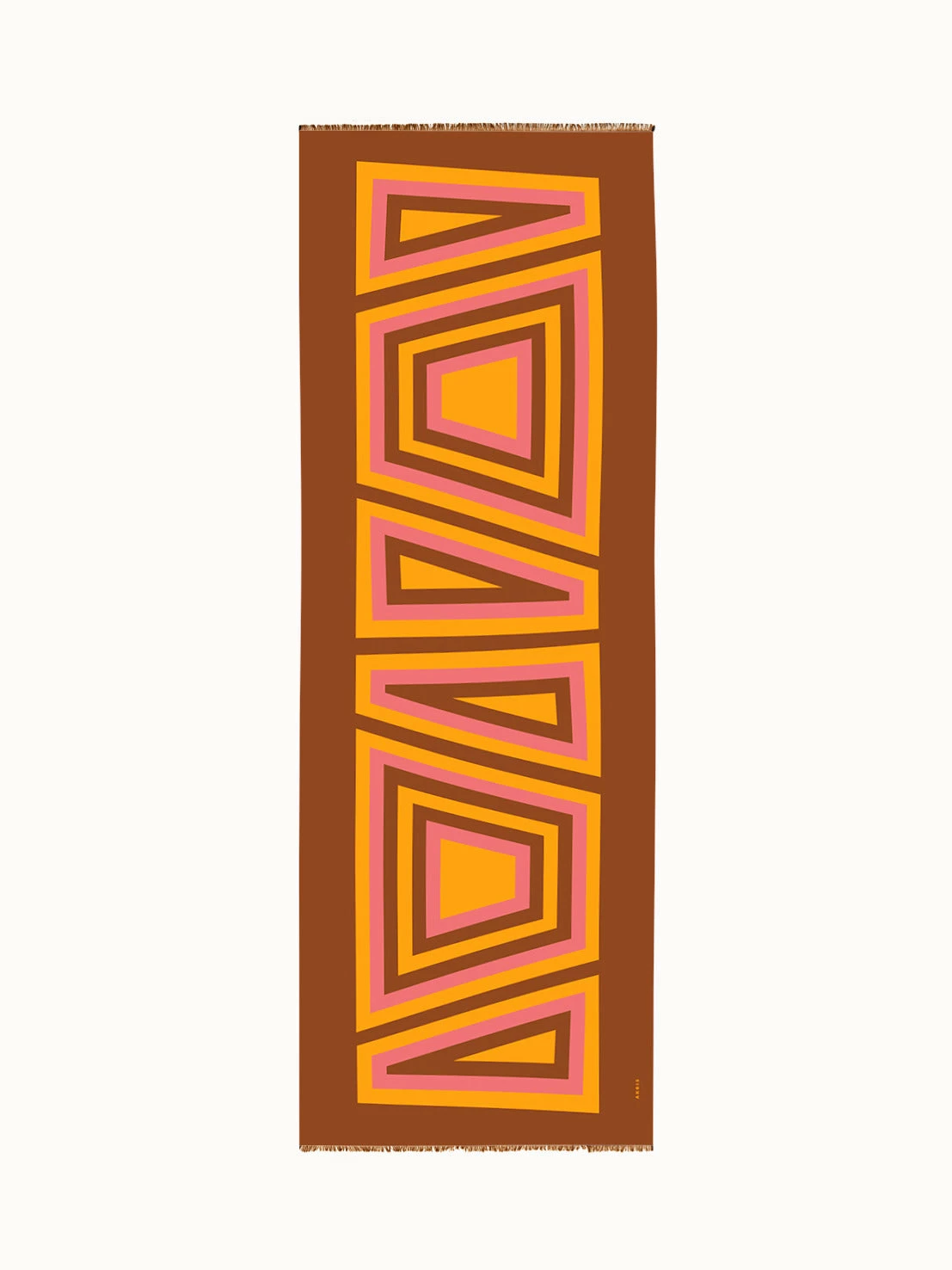 Sophistication exudes from this Infinite Trapezoid print cashmere silk scarf. It will keep you warm when wrapped around your neck or acts as an elegant accessory when beautifully draped around your shoulders. Measures 65x200cm