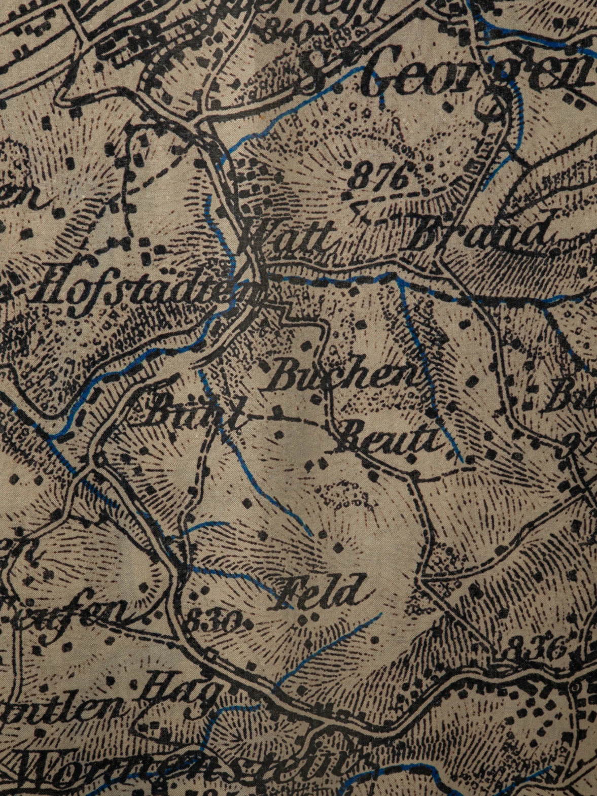 This cashmere silk scarf featuring a vintage map print of St. Gallen is a tribute to our long standing heritage and roots. This ultra-soft, lightweight style is easily worn wrapped around your neck or draped over your shoulders like a shawl. Measures 70x200cm.