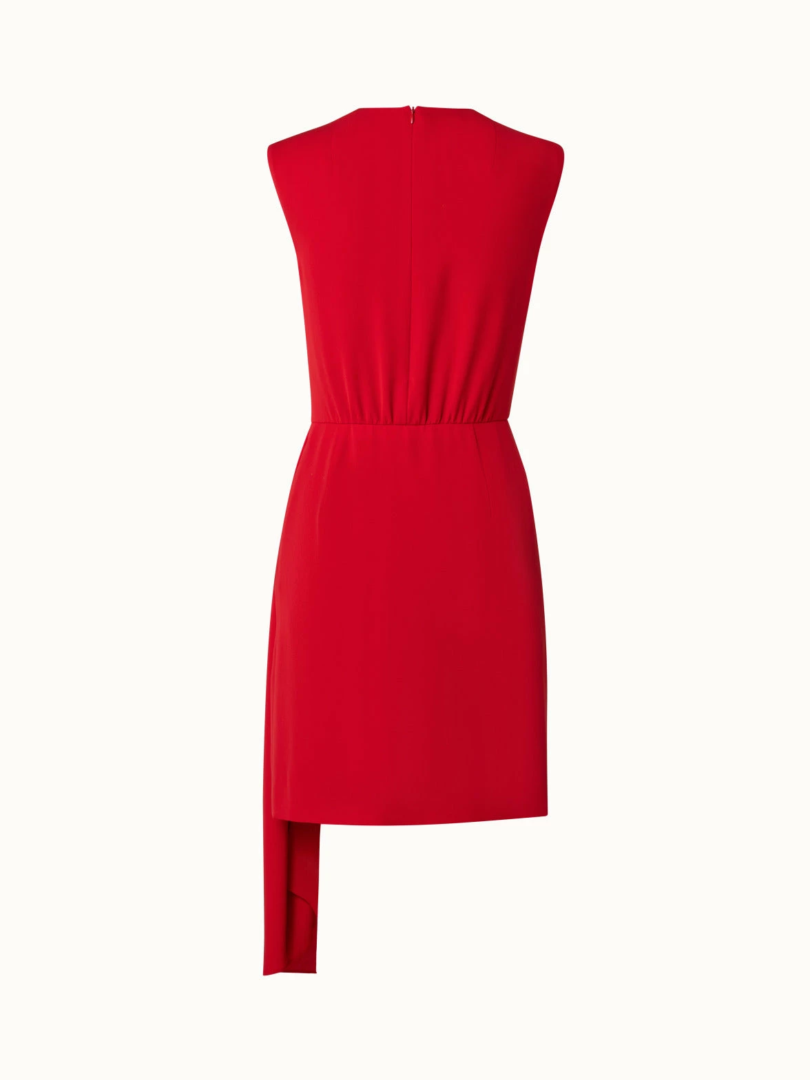 This Akris dress is crafted in silk crêpe for an elegant look and comfort throughout spring and summer. Shoulder pads showcase the vintage inspiration of the Spring 2023 collection and create a strong look. The deep V-neck and skirt with asymmetrical overlayer create a feminine silhouette.