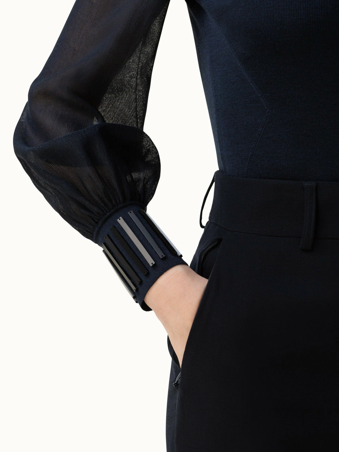 Be the first to review “AKRIS Knit Silk Blouse With Sheer Tulle Sleeves” Cancel reply