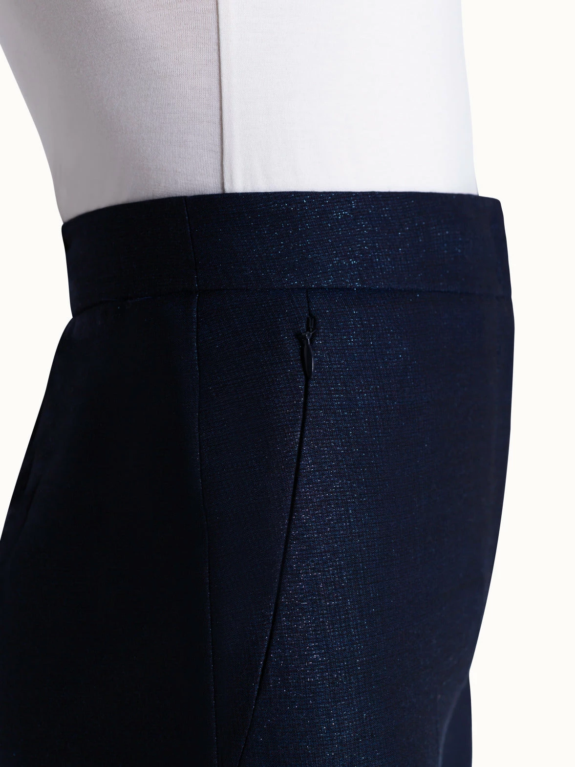Elongate your legs and slim your silhouette with these trendy yet demure high-waisted bootcut pants. Crafted from the finest double-face lurex wool, these pants have a slight metallic sheen to them. Our FARIDA pant features a front closure and zip pockets, that allow you to change up your look slightly.