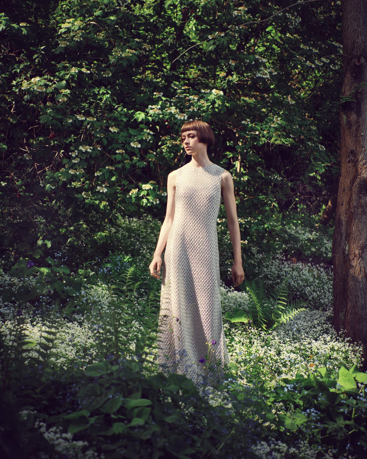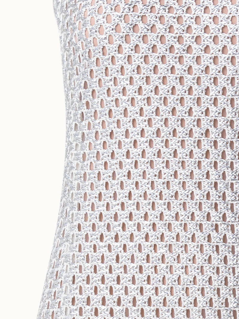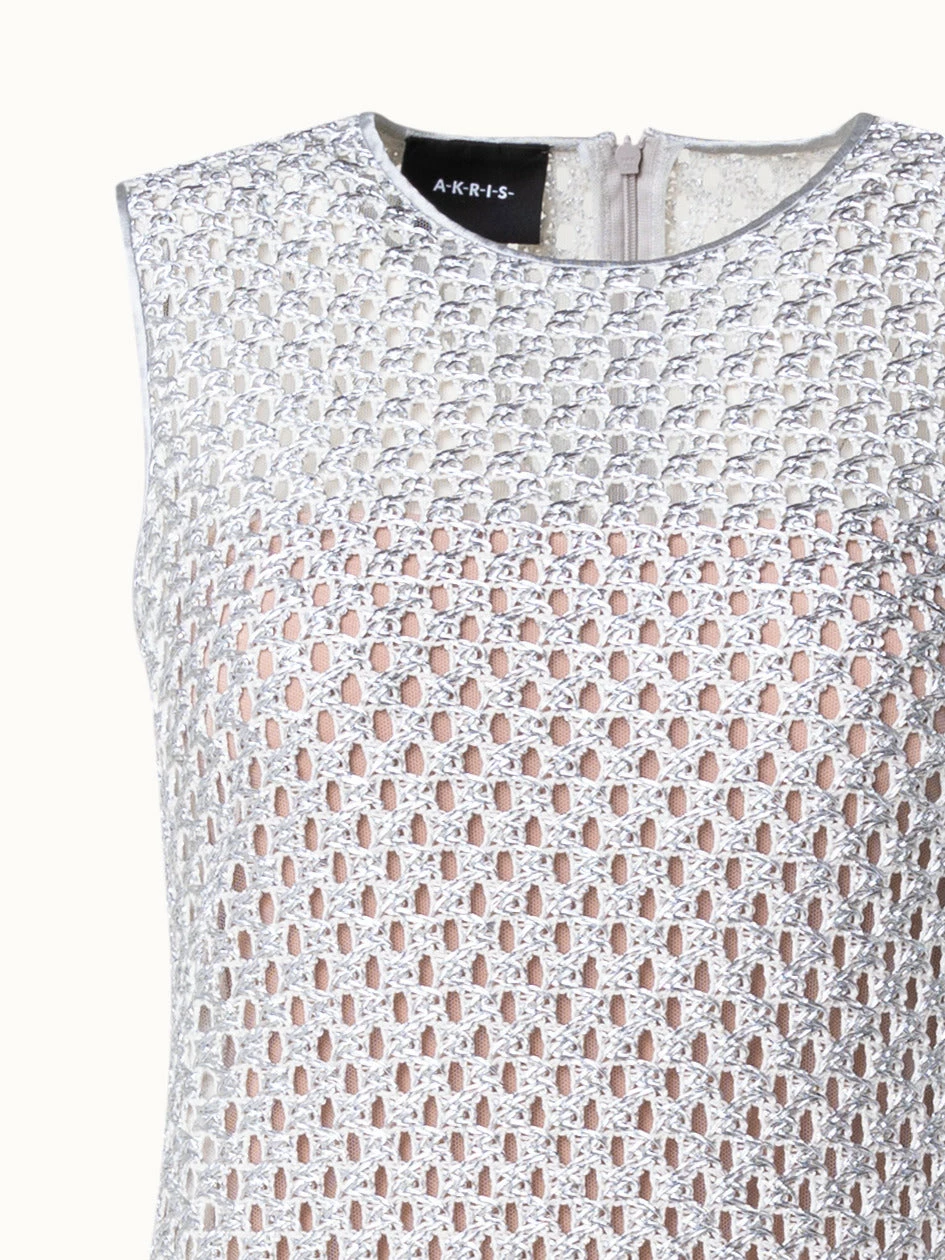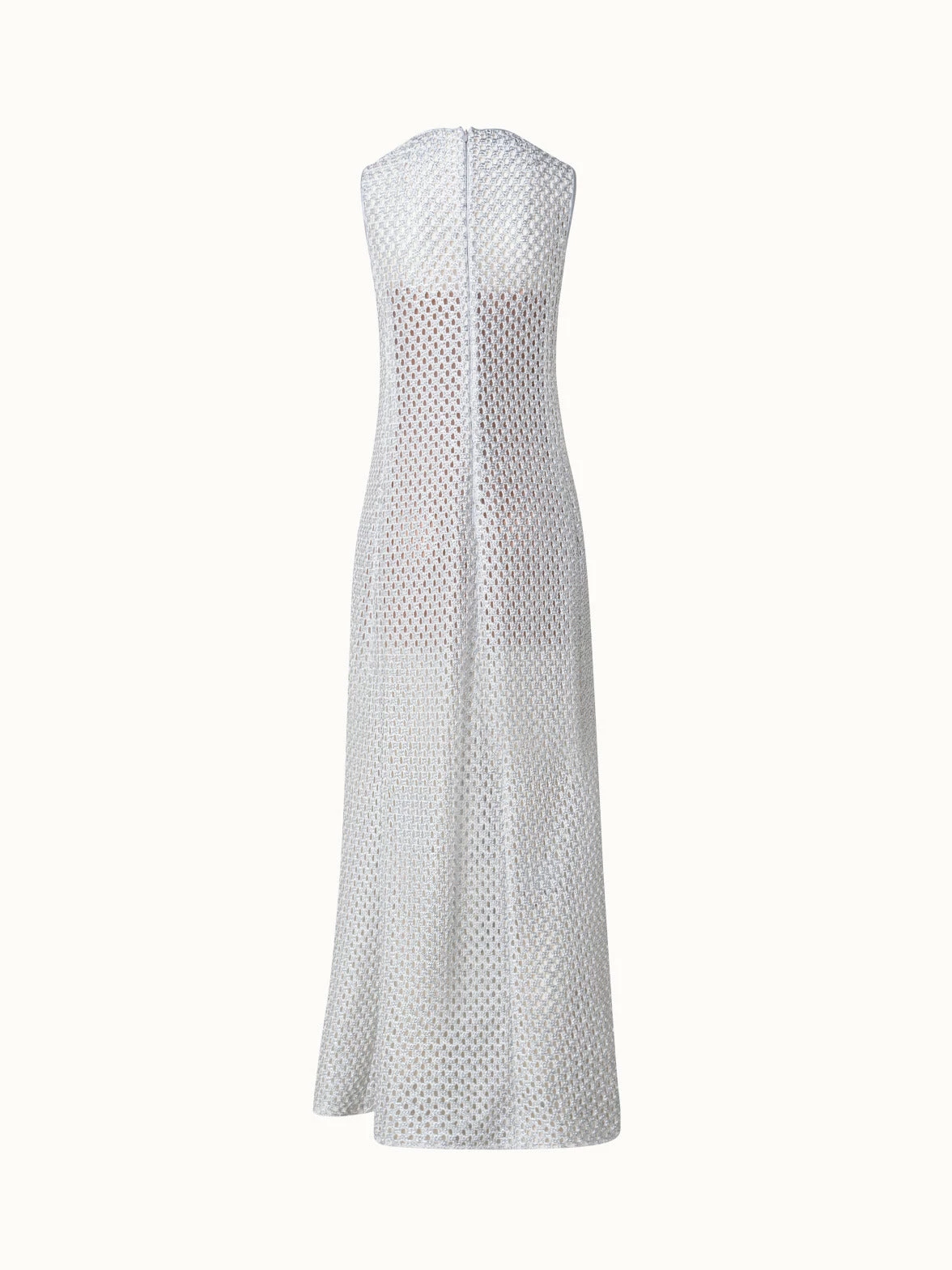 gown, lurex cotton metallic crochet embroidery, round neck, side slits, sleeveless