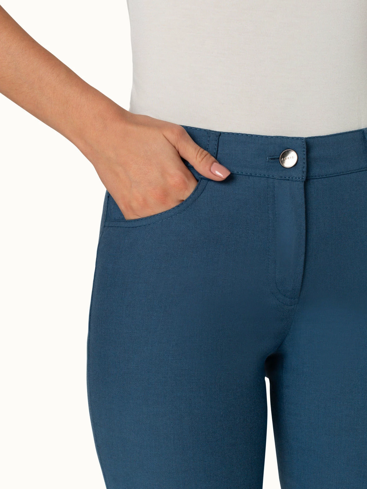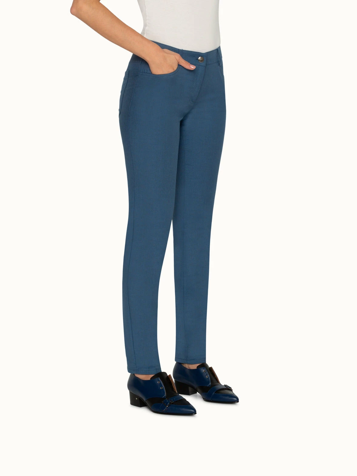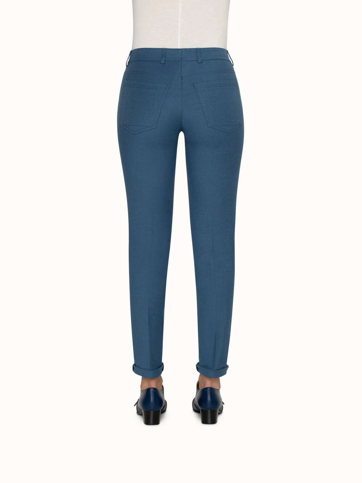 These Akris MAGDA slim leg pants are made from comfy silk stretch double face and have 5 pockets. Team yours with a fine stripe intarsia pullover in the same Ice tone for a refined off duty look that will also keep you warm and comfortable.
