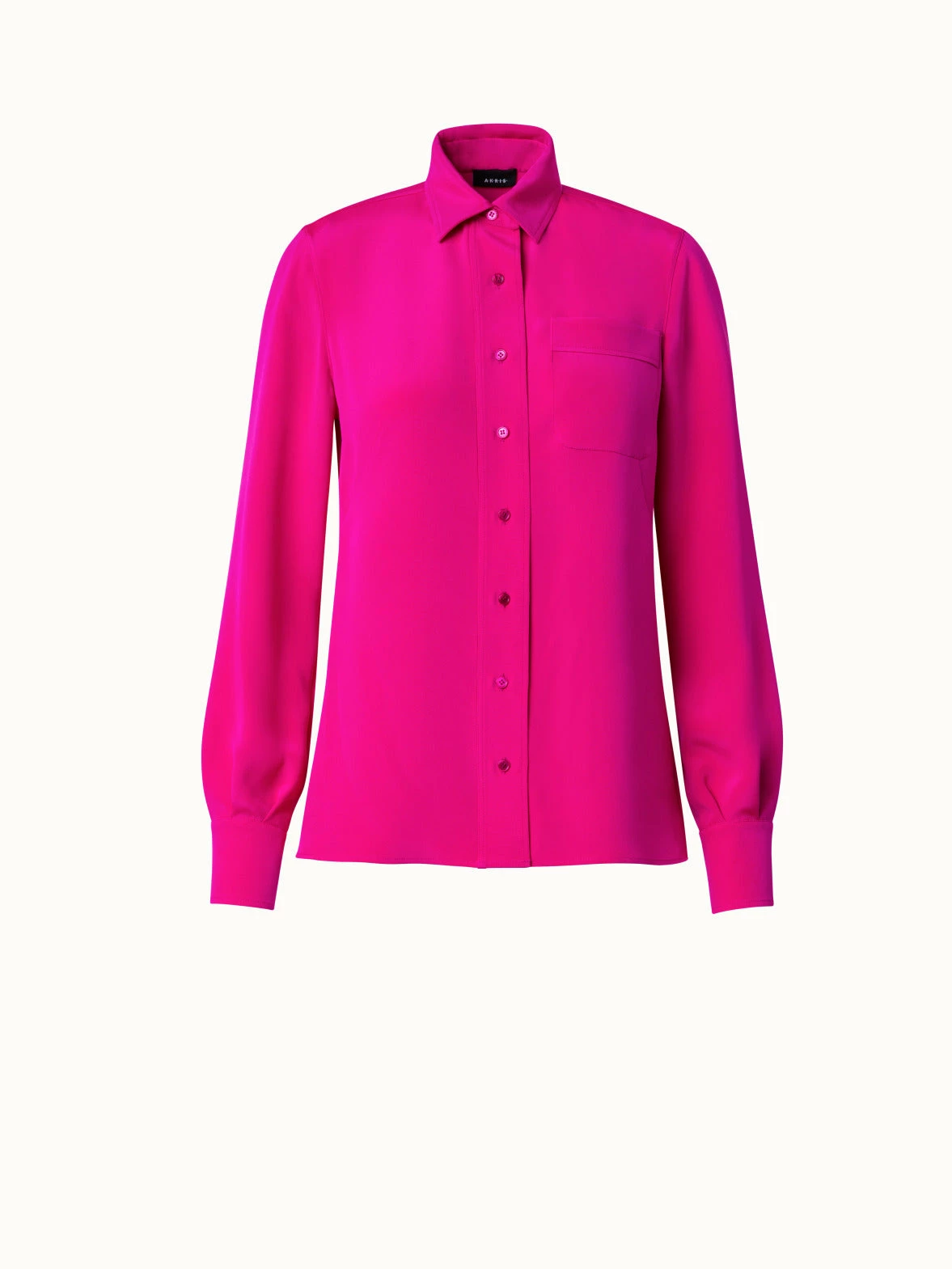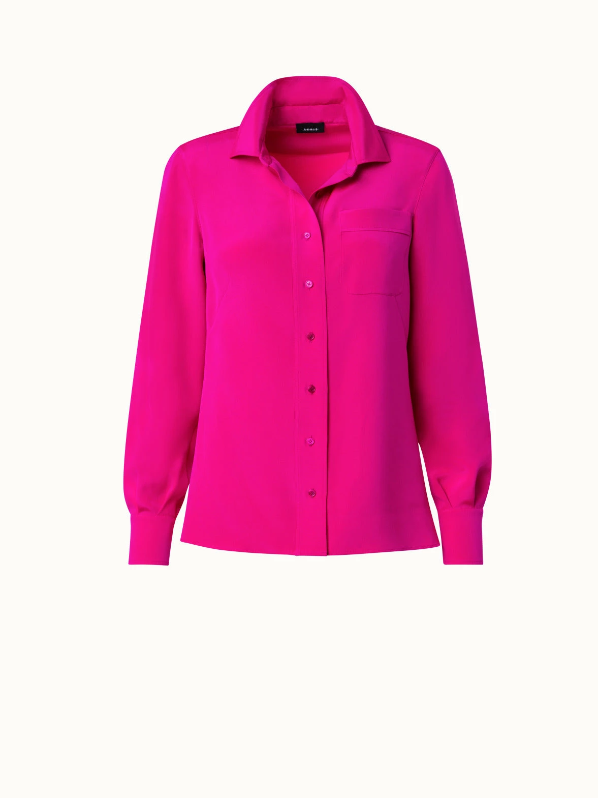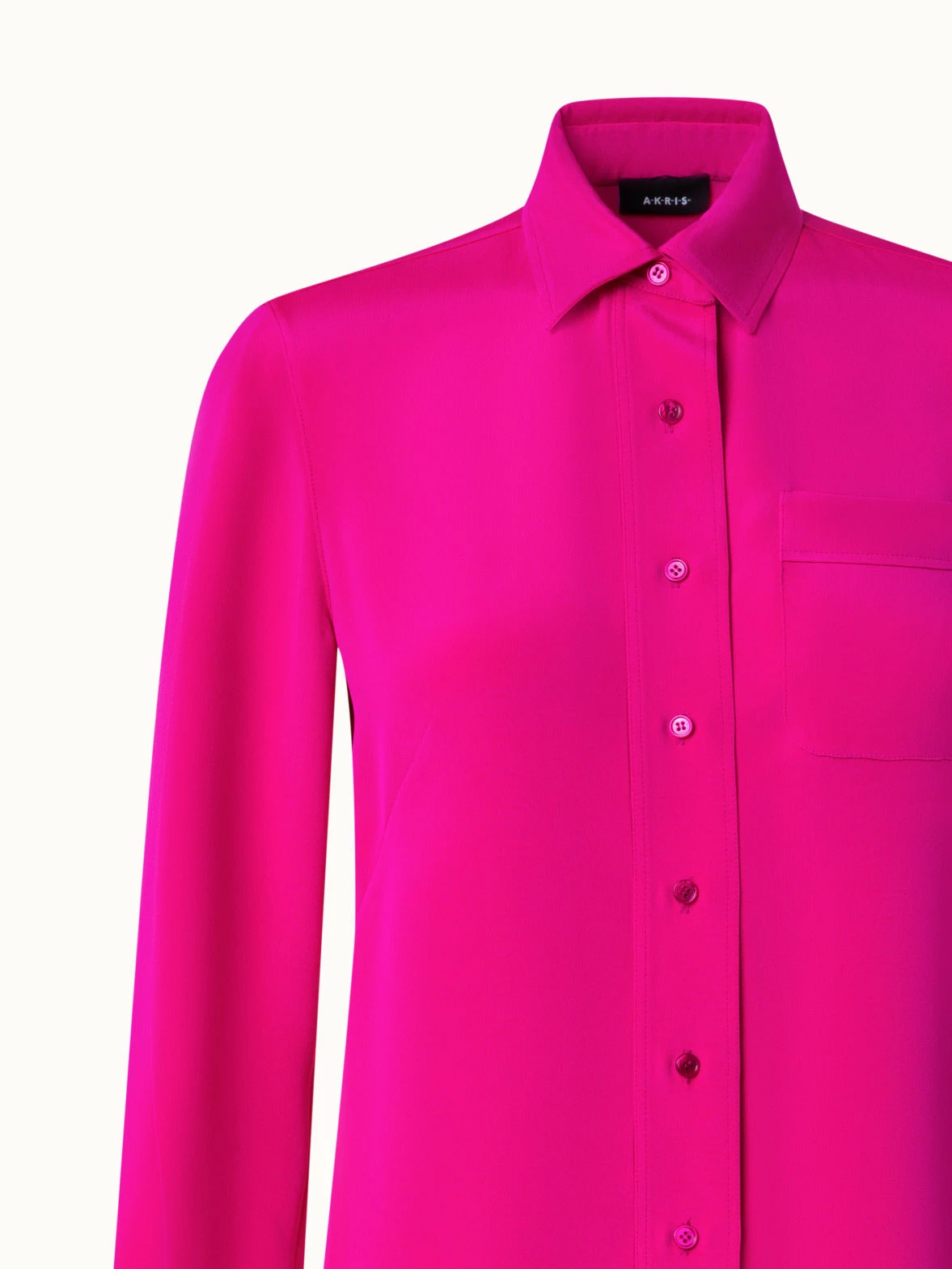Offered in a fresh new hue, this sleek Akris tunic blouse will add a pop of color to your look. Crafted in silk crêpe, this style features a front patch pocket, button closure, and side slits.