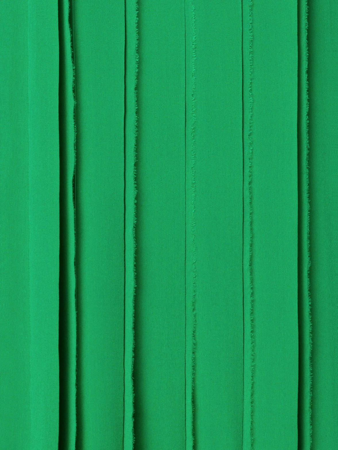 This Akris gown is an elegant and powerful style for spring and summer occasions. Inspired by the rainbow colors of Ugo Rondinone’s artwork WE ARE POEMS, this gown is crafted in a radiant silk georgette fabric. It features pleats on the front that create beautiful movement along with the side slits. The shoulder pads are a nod to the 1980s inspiration of the Spring 2023 collection that celebrates 100 years of Akris.