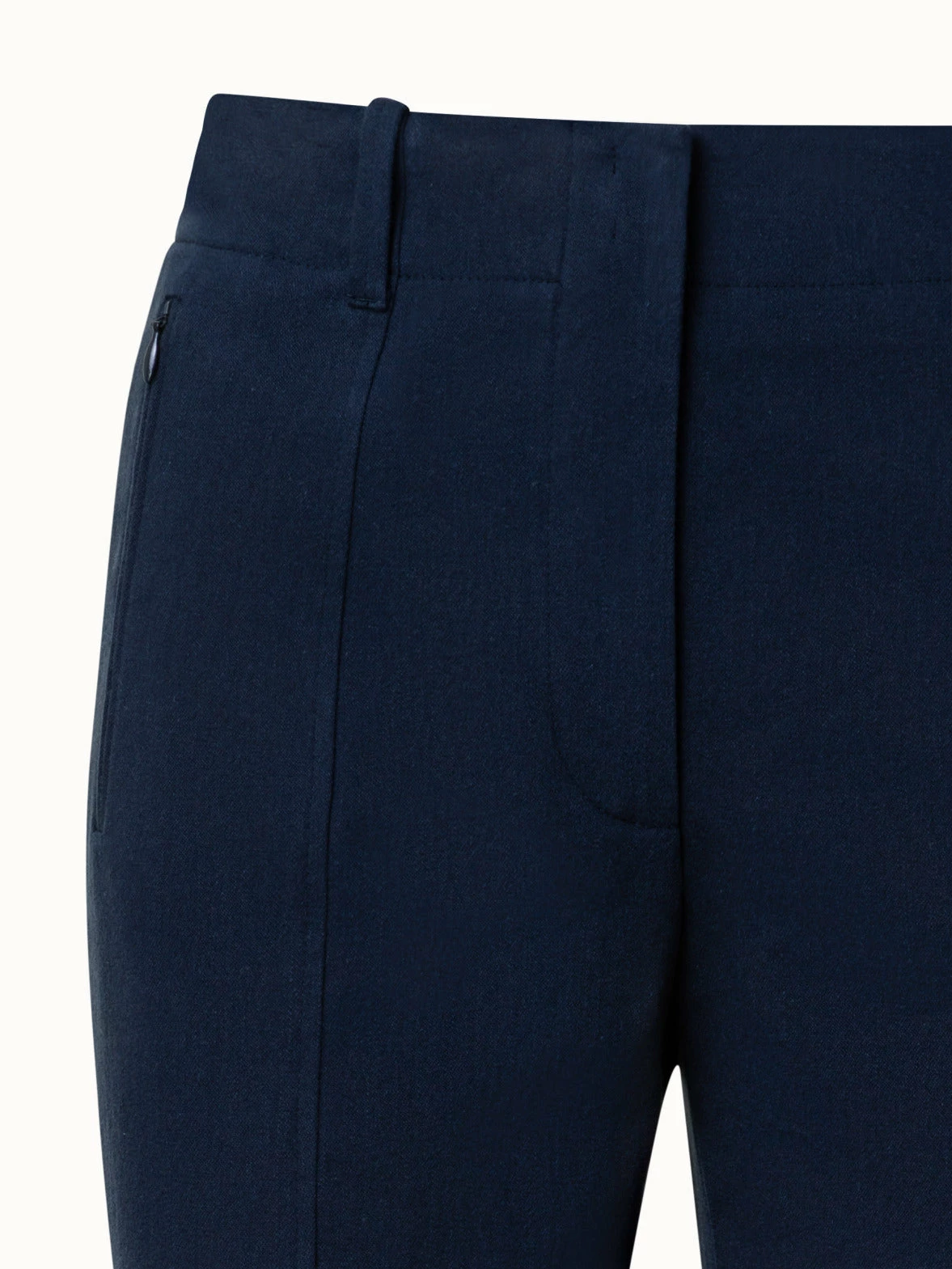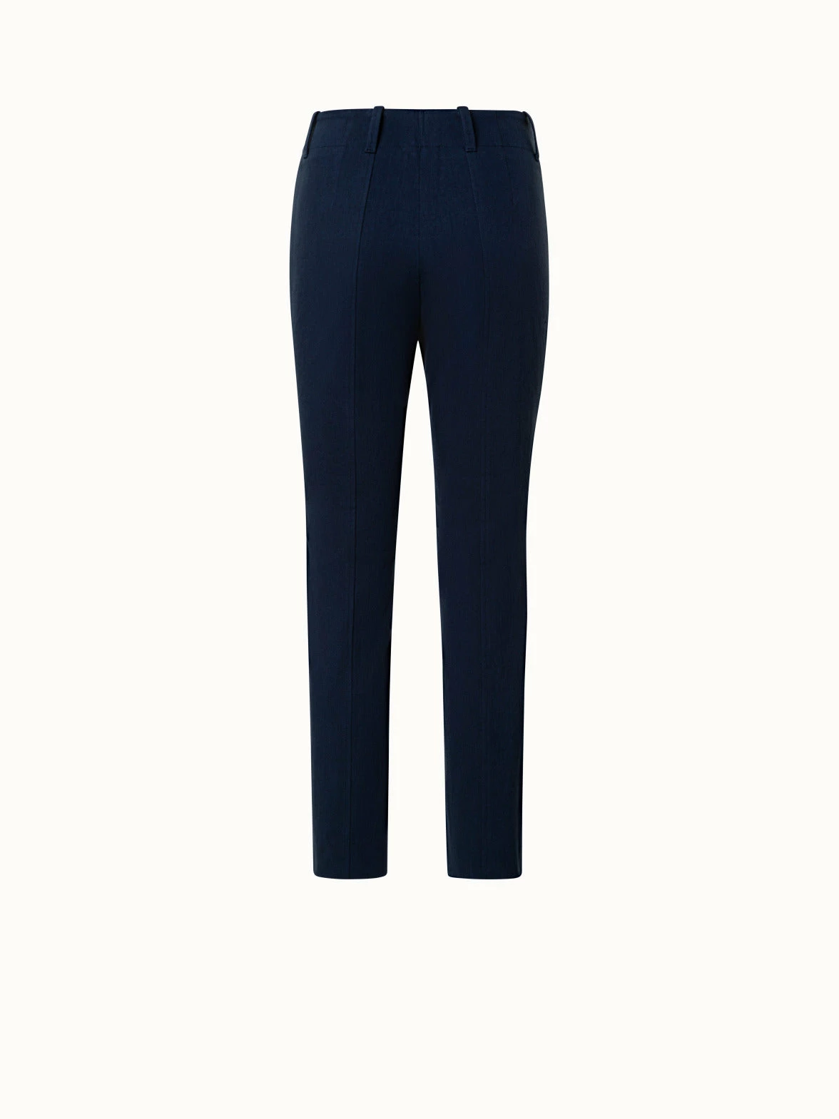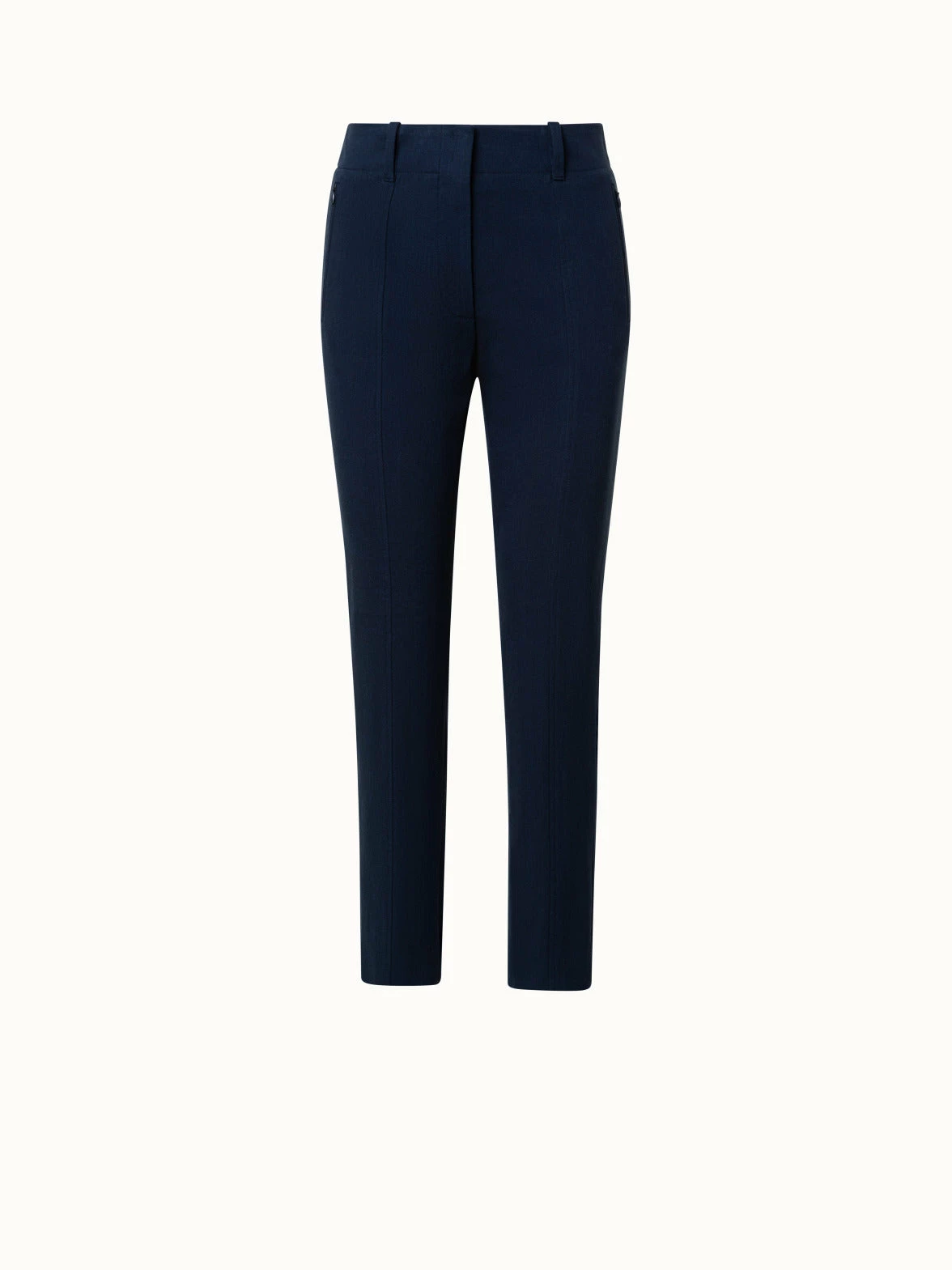 These Akris pants Connor are crafted in comfortable cotton stretch denim that give them a casual look and feel. The zip pockets ensure a flattering look around the waist that is continued by slim, ankle-length legs.