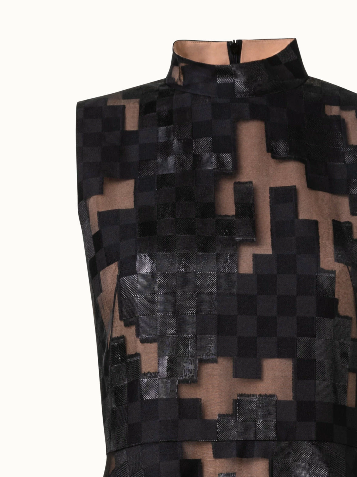 This Akris Midi Dress is crafted in a Square Jacquard made from wool, viscose, silk, and lurex, creating a pixelated look that plays with structure and implied transparency. Featuring a mock neck, fitted body, and A-line skirt, the dress creates a modern, flattering look. Closes with a back zip.