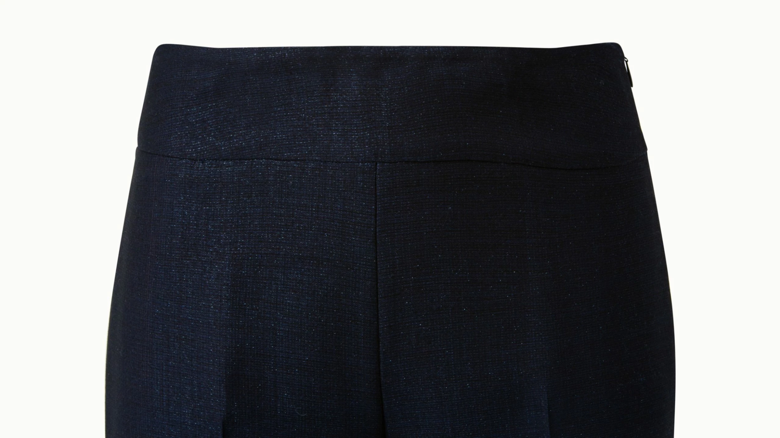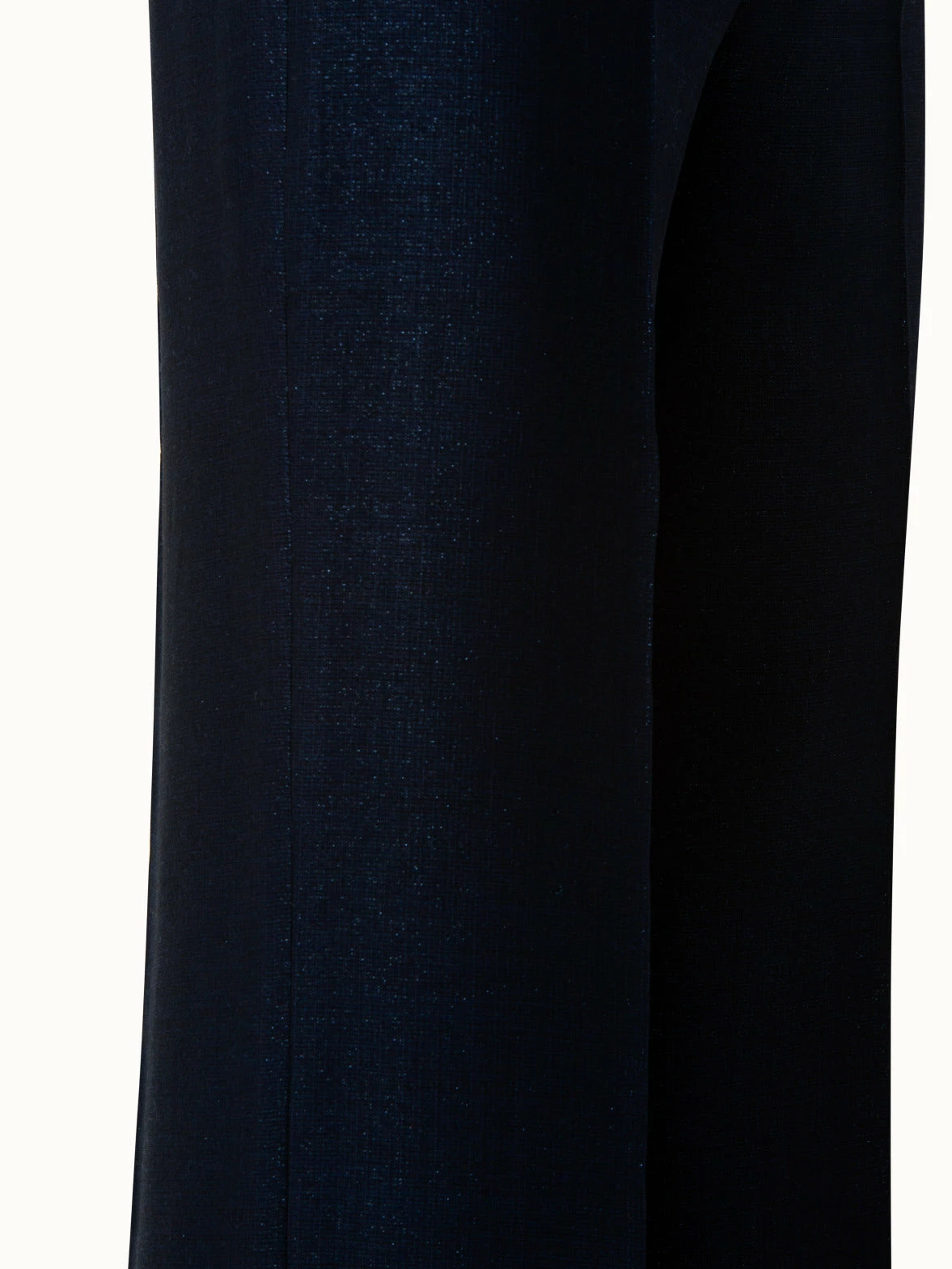 Our CARLA pant is offered this season in wool lurex double face, a chic, understated eveningwear fabrication with subtle shine. This beloved style features a high rise, side zip closure, and a wide, straight leg. Complete your cocktail suit with the Gavino jacket in the same fabric.