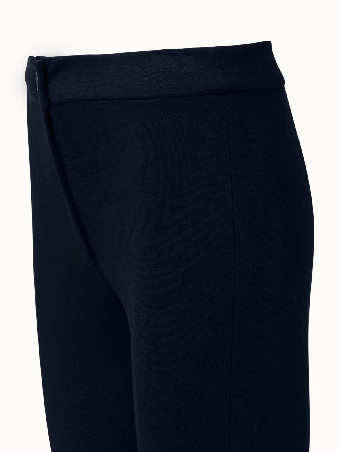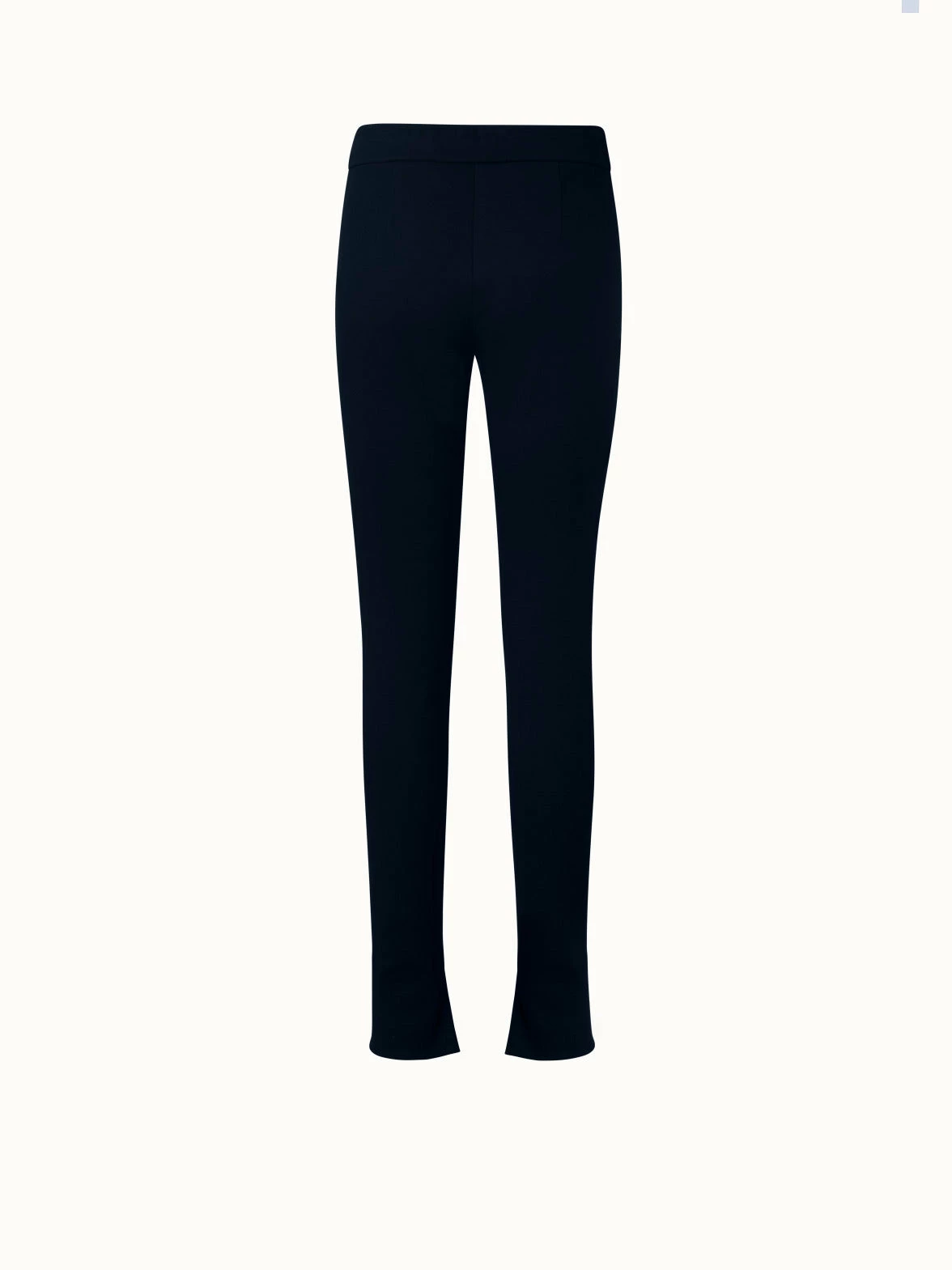 These Akris pants Friatte are crafted in viscose stretch jersey, creating a comfortable skinny leg style with an elegant touch. Slits at the bottom hem open up the pants to fall over shoes.