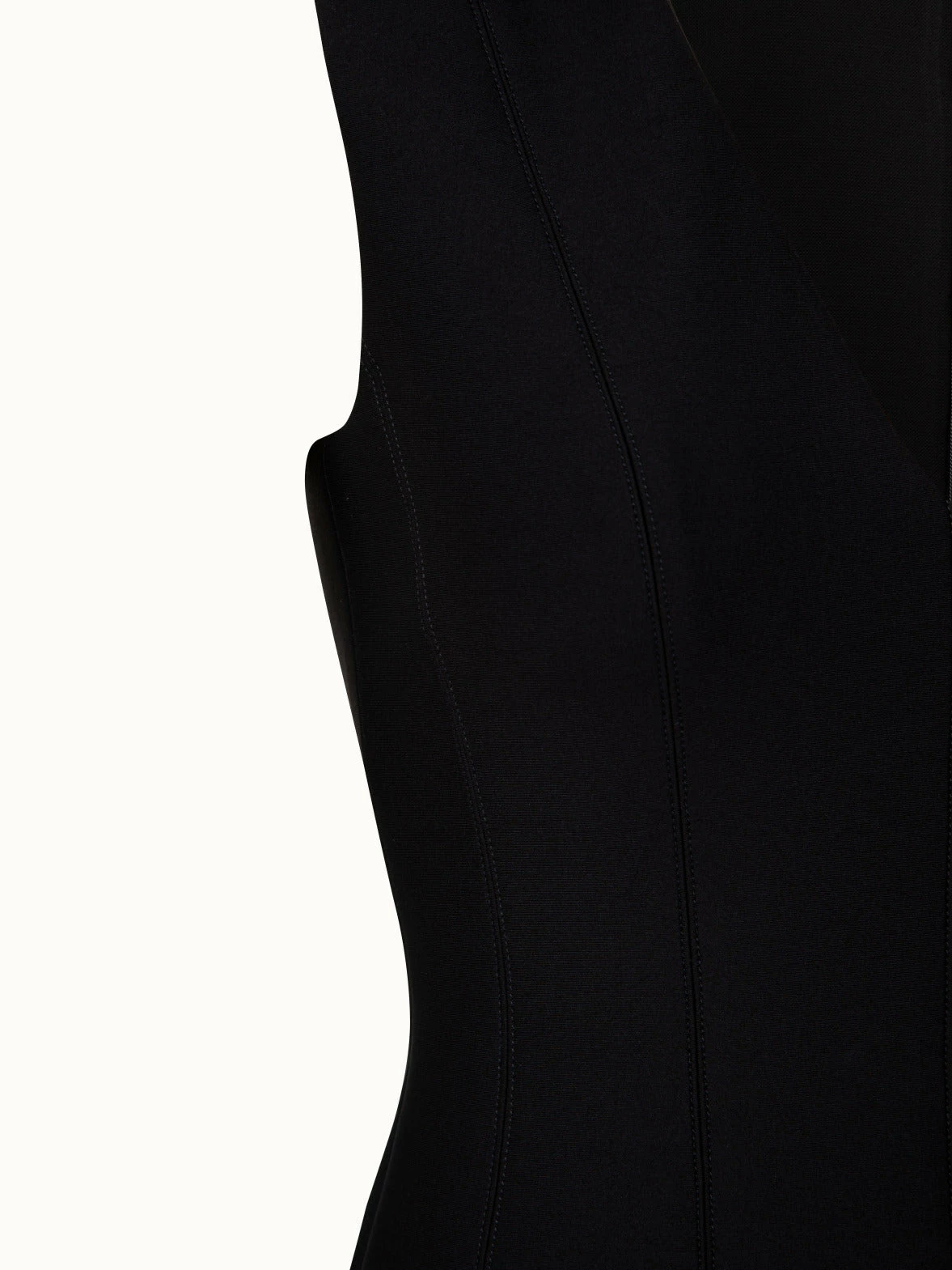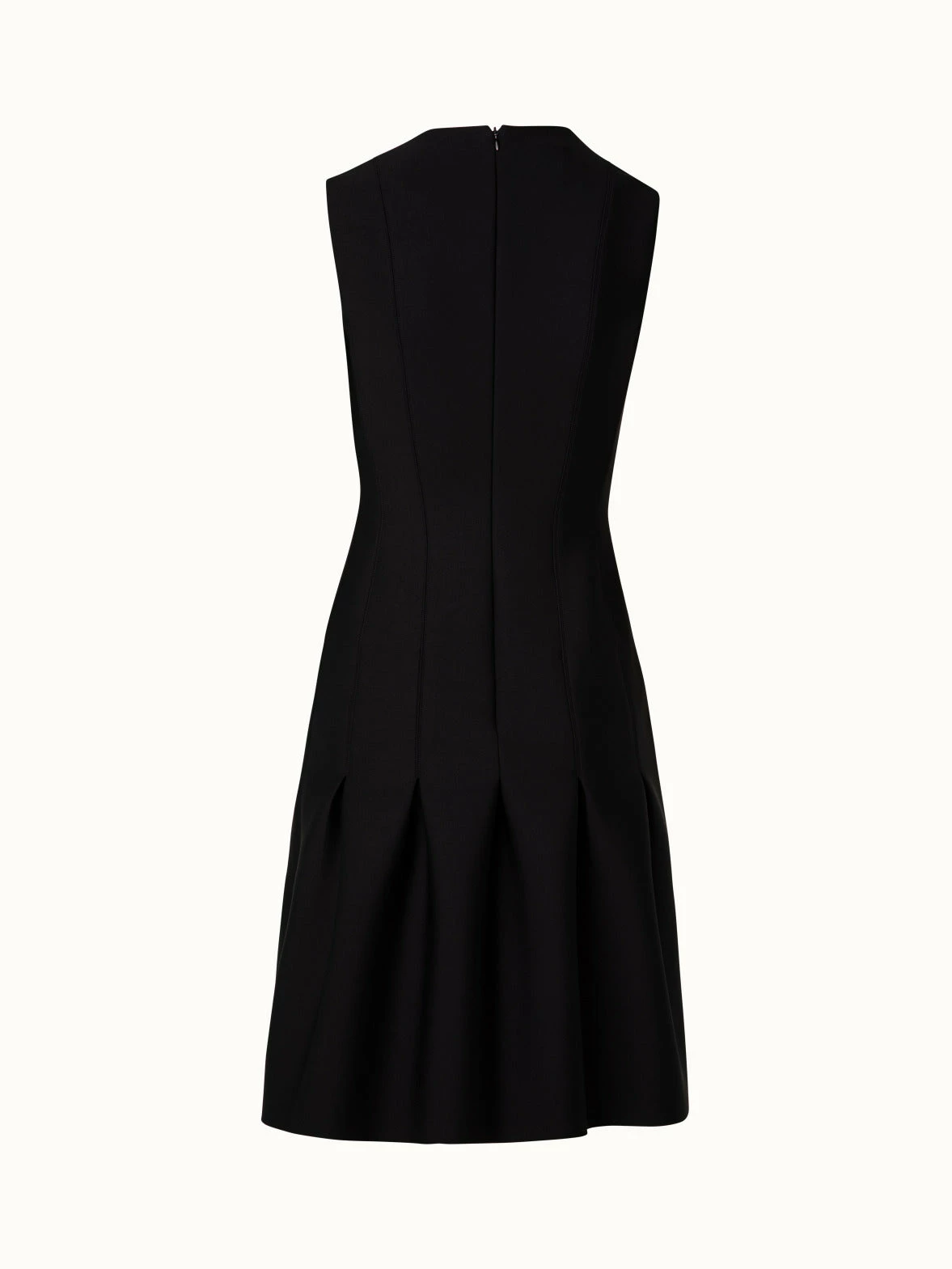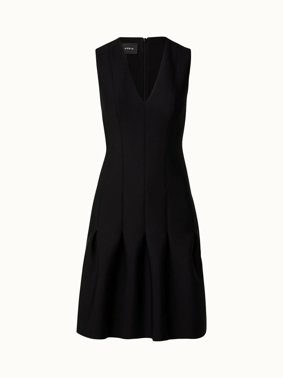 This sleeveless Akris short dress is crafted in modern techno neoprene for a futuristic look and feel. It features a fit and flare pleated skirt that creates a unique volume around the legs. Closes with a concealed back zip.